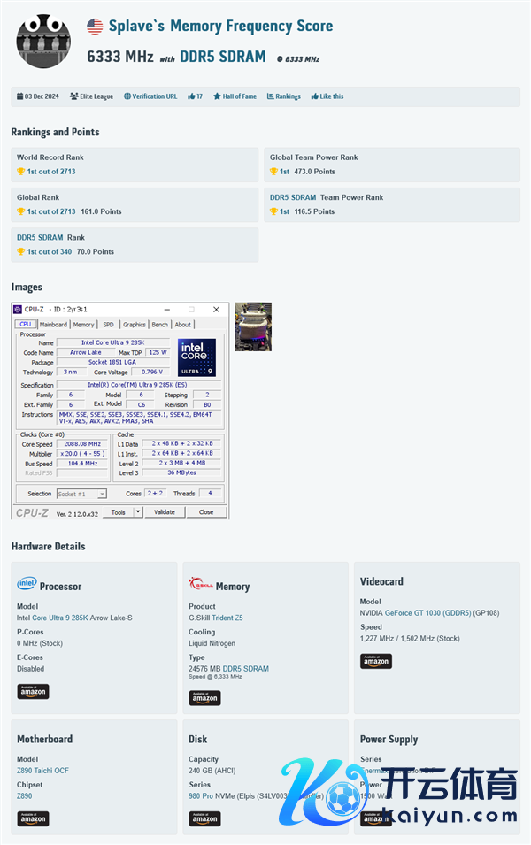 使用酷睿Ultra 9 285K束缚器、全何Manta XFinity DDR5-9466 24GB内存两条,在风冷条目下,手动革新电压、蔓延,最终结束了DDR5-10133的高频率!