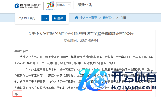 9月4日,开发银行发布公告称,将对个东谈主外汇账户进行钞汇户团结。具体履行模样为:存量个东谈主活期外汇现钞户资金等额转入活期现汇户,现汇户视同发生一笔平淡存入,现汇户余额相应增多,之后默许使用现汇户办理外汇业务。个东谈主外汇钞汇户团结后,取消钞汇折算关系收费。