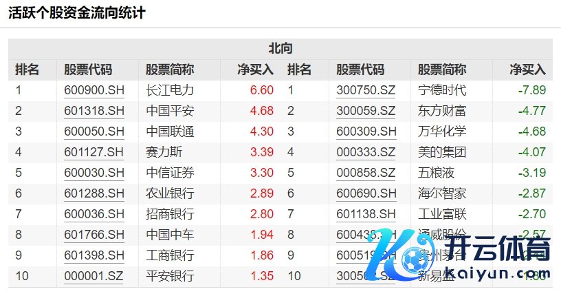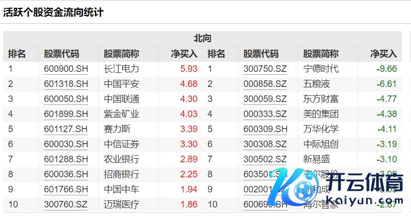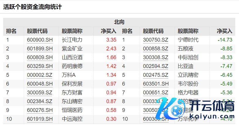 北向资金当天净卖出17.83亿元,长江电力、隆基绿能等获加仓前十大成交股中世界杯体育,净买入额居前三的是长江电力、隆基绿能、海尔智家,离别获净买入2.63亿元、2.54亿元、2.48亿元。