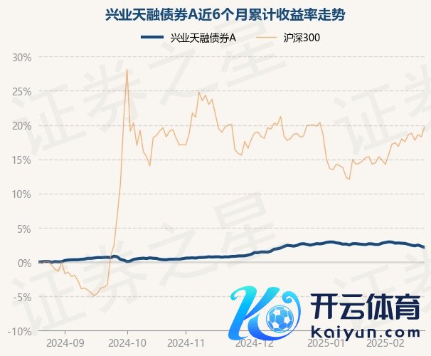 本站音问,2月21日,兴业天融债券A最新单元净值为1.097元,累计净值为1.3694元,较前一交游日着落0.17%。历史数据默契该基金近1个月着落0.52%,近3个月飞腾1.3%开yun体育网,近6个月飞腾2.13%,近1年飞腾4.7%。该基金近6个月的累计收益率走势如下图: