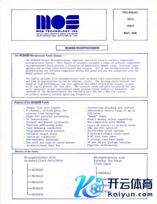 1976 年 5 月的 MOS 6500 微处理器系列数据手册。图片由 MOS Technology via Wikimedia Commons 授权使用 ( 各人范围 )