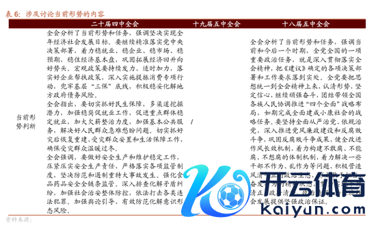 在主要结构方面,相较于十九届五中全会公报,本次公报仍然保留了12大略点,不外端正有所调遣。其中,对外洞开、民生、当代化产业体系的排序均有所上调,尤其是对外洞开。其从此前的第9为升迁至了本次的第5位,排序大幅跃升表明了,后续我国将握续扩大对外洞开的决心。