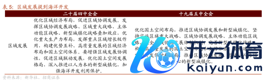 要点五:“海洋”再度出现。相较于十九届五中全会,本次公报提到了“海洋开发”。上一次在公报里提到“海洋”照旧在2010年聚焦十二五盘算的十七届五中全会。