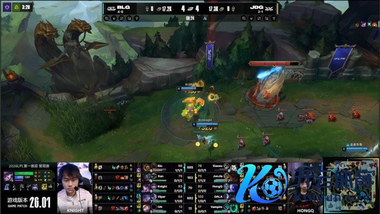 [19:20]knight辛德拉脸探自家野区草丛被JDG野辅逮捕,Junjia石头东说念主拿到knight大东说念主头。