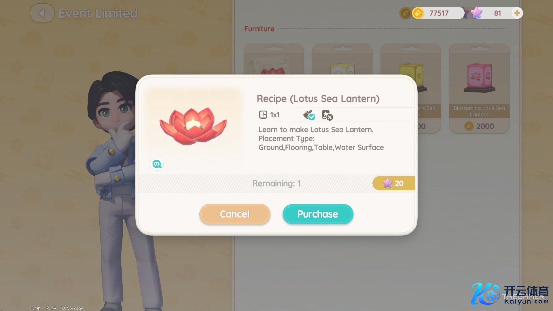 淌若你思摈弃莲花式式的海灯,你需要改为制作“祝愿海灯”。这个说念具需要购买配方,而不是获胜购买制品。