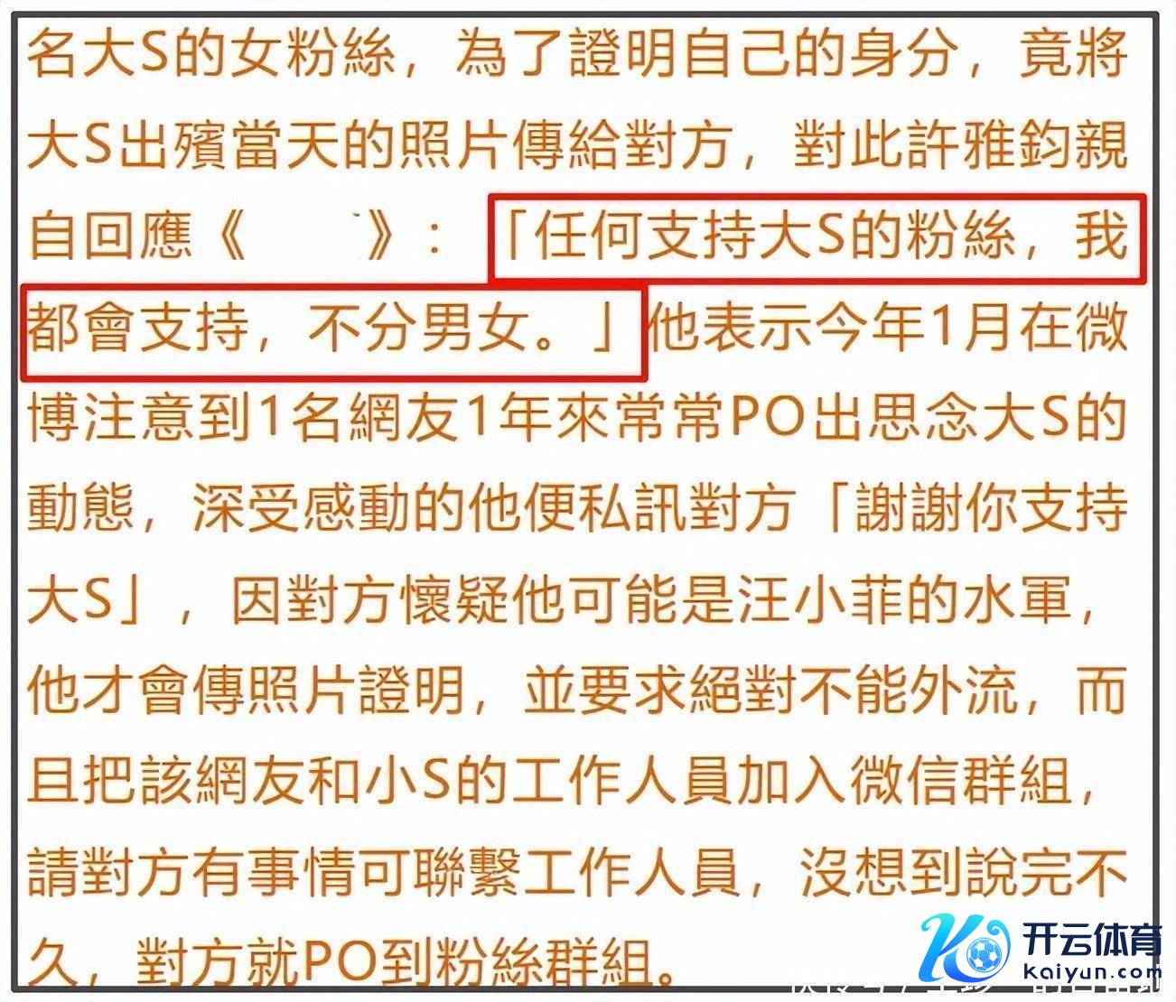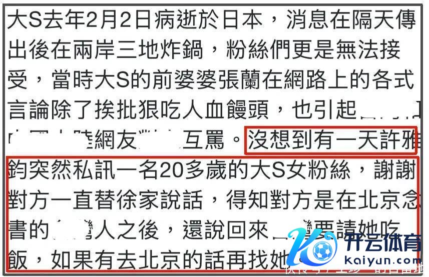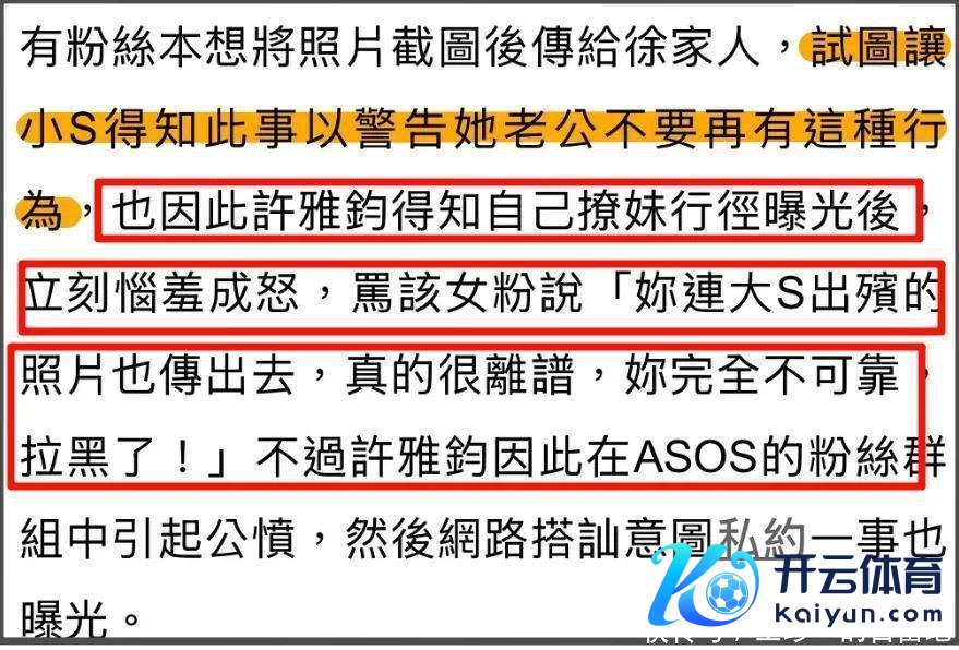 因为这位女粉丝庸碌在网上为大S说好话,许雅钧便以此为机会有关上了这位女粉丝。