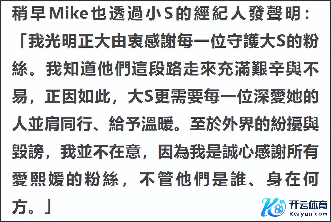 如今,大 S 已经离世一年多,但愿闹剧就此罢手开yun体育网,让她信得过得以安息。
