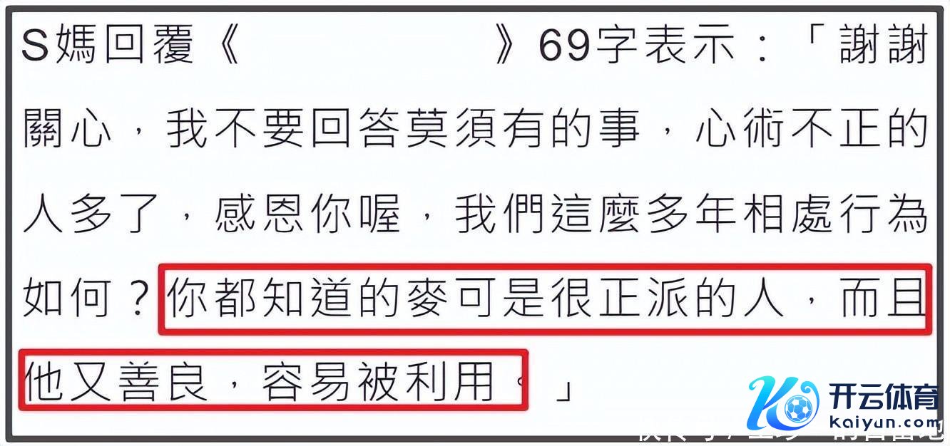 濒临媒体追问,S妈直言对于许雅钧的事情是莫须有的事情,她说心术不正的东说念主太多了。随后她又说许雅钧是一个很耿直的东说念主,是一个很和煦容易被愚弄的东说念主。
