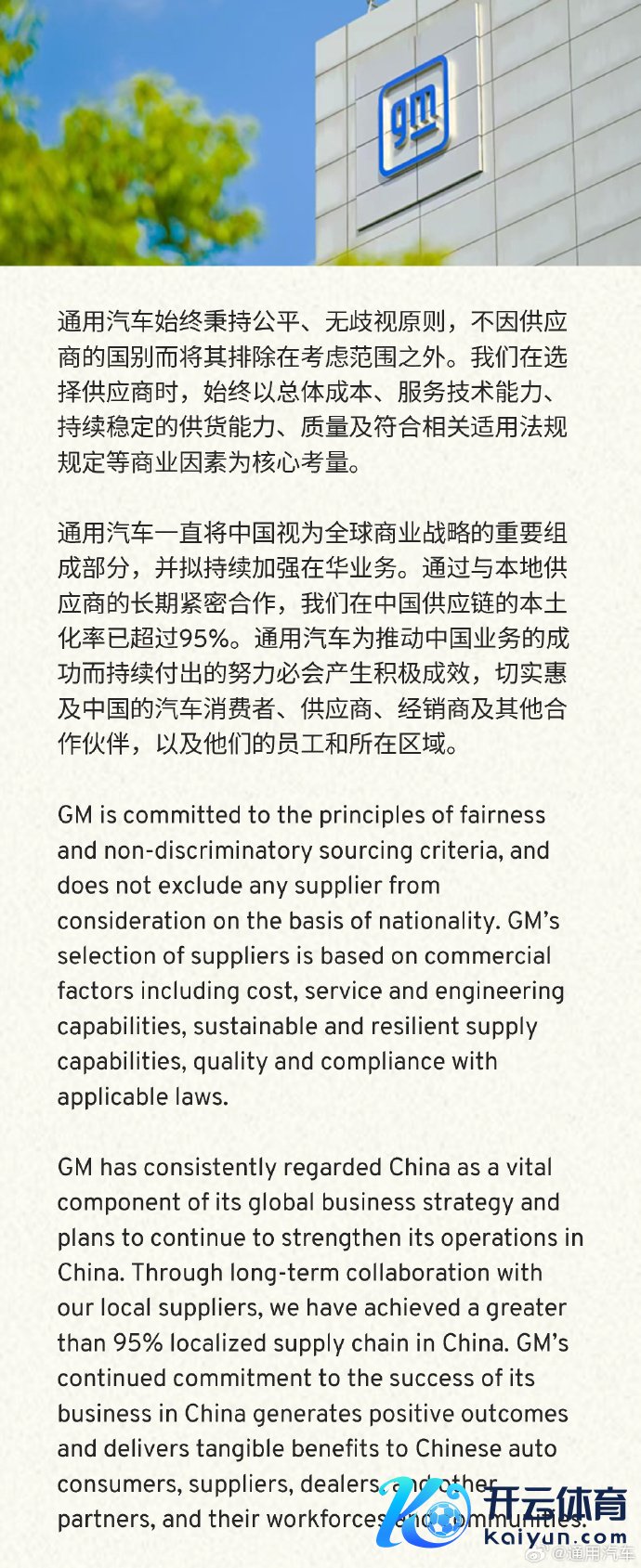 通用汽车:公司在中国供应链的原土化率已逾越95%通用汽车:公司在中国供应链的原土化率已逾越95%